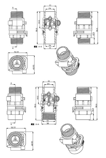 【Inlet & Outlet Diameter】 G1'' Female Male
